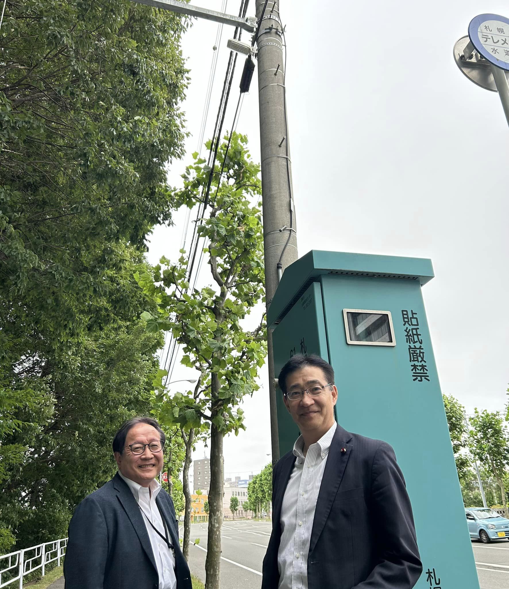 厚別南にある厚別南白樺公園前に防犯灯を2箇所設置することができました。 このたび厚別南2丁目町内会の三浦会長から公園に隣接した歩道が暗いので防犯灯を設置したいとのご相談をいただき、6月18日には三浦会長と現場を確認。翌日には写真と地図をもって土木センターへ相談に行きました。補助金等も説明し町内との素早い連携で電柱2箇所に防犯灯が設置されました。写真はご相談いただいた三浦町内会長と現場のビフォーアフターです。