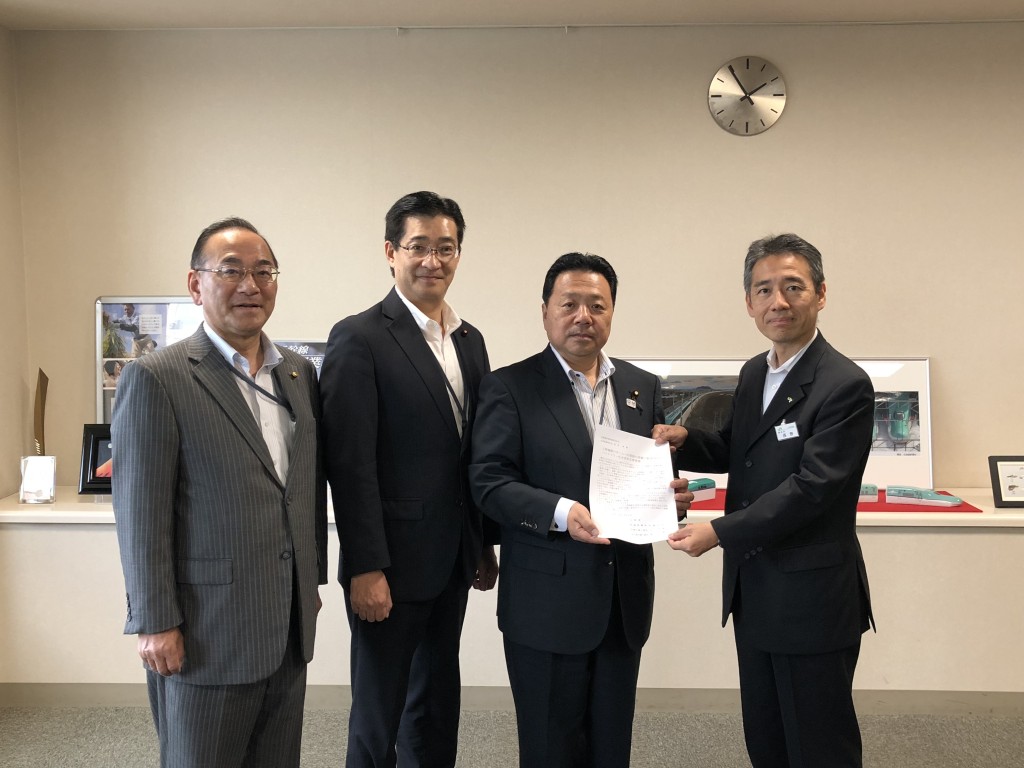 平成30年7月23日、JR北海道本社で佐藤英道衆議院議員と藤田北広島市議とともに、上野幌駅のホームへの屋根の設置と駅舎内のバリアフリー化を求める要望書を提出させて頂きました。ご対応頂いた西野取締役副社長は、駅舎の再整備も含め一体的に取り組んでいくと述べられました。