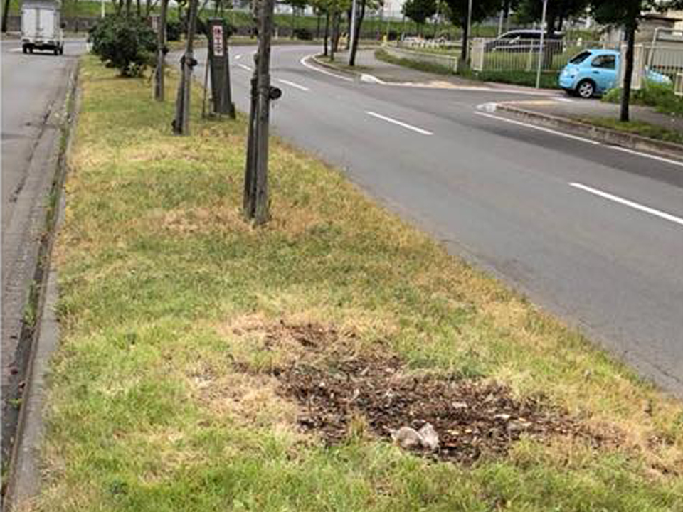 もみじ台北6丁目のT字路は一時停止して右折する際、下りカーブの中央分離帯に一定の高さがある樹木が生い茂っていたことから、車を運転する方には進行してくる車が見づらいとの市民相談をいただいていました。 ついては土木センターに相談し、低く生い茂っていた木を何ヶ所か伐採してもらい見通しを良くしていただきました。