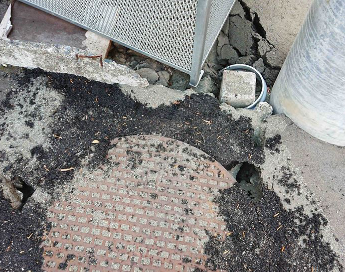 歩道やマンホール部分の陥没を現地調査